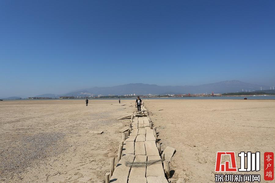 2019年10月20日,江西九江,鄱陽(yáng)湖星子站水位為10.18米,隨著水位持續(xù)下降,豐水期浸泡在鄱陽(yáng)湖底的一座總長(zhǎng)2930米被譽(yù)為“中國(guó)最長(zhǎng)的湖中古木石橋”露出水面。