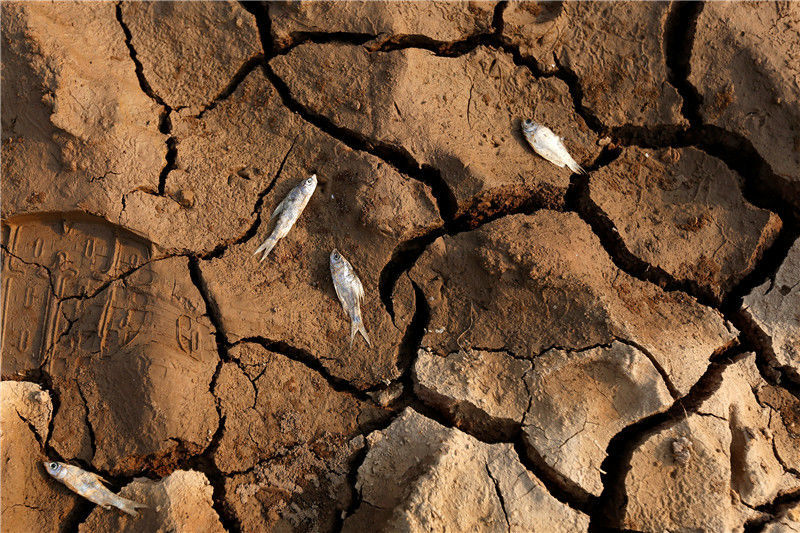當(dāng)?shù)貢r(shí)間2016年5月13日,柬埔寨甘丹省,受厄爾尼諾現(xiàn)象影響,當(dāng)?shù)卦庥龈珊堤鞖?,池塘干涸開(kāi)裂。