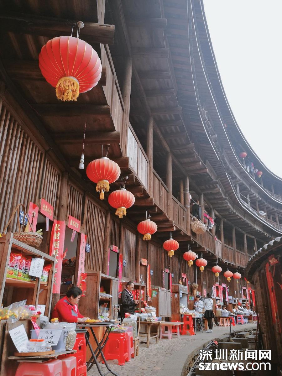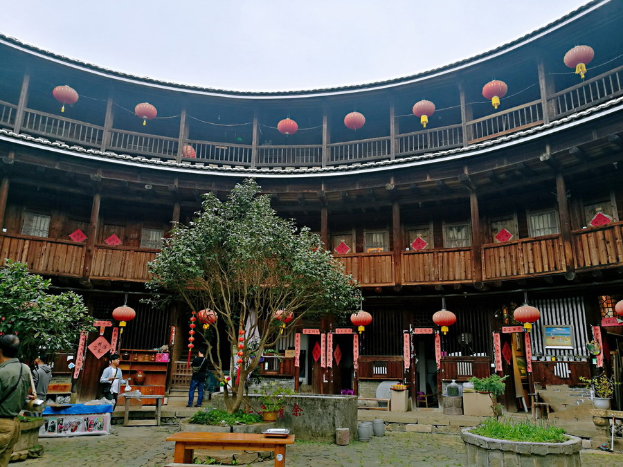 承啟樓高四層,四圈上下400余間,“民居”系列郵票中福建民居就以承啟樓為圖案,進(jìn)入土樓可以欣賞到典型的土家風(fēng)情。李酮攝