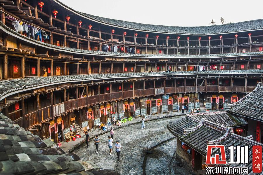 客家圍龍屋里面,現(xiàn)在大部分被開發(fā)成旅游景點(diǎn),有“土樓之王”稱號的承啟樓,每年就吸引大量的游客參觀。李酮攝