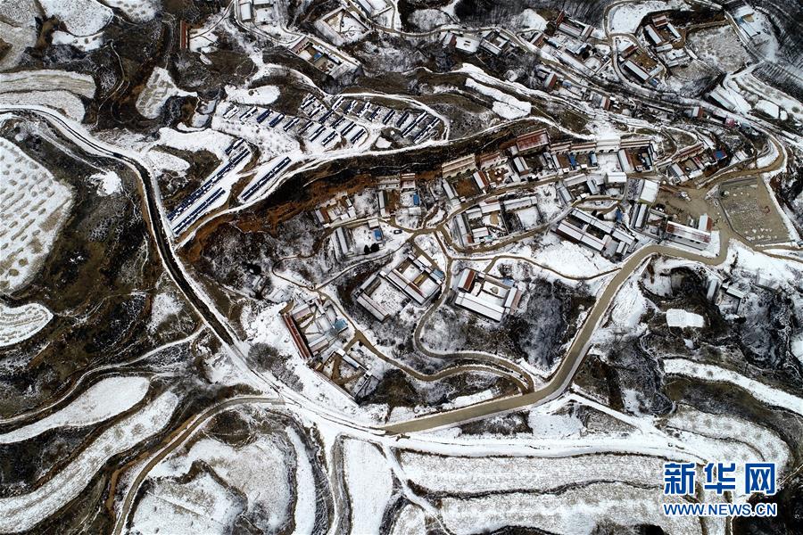 山西省武鄉(xiāng)縣大有鄉(xiāng)王莊溝村雪景(2月15日無人機(jī)拍攝)。