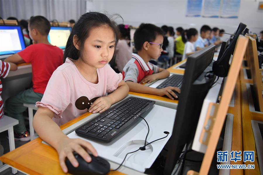 9月3日,金寨縣希望小學南校區(qū)學生在上計算機課。新華社記者張端攝