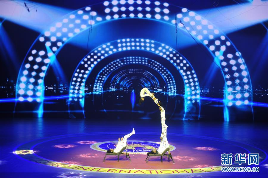 11月3日,來自埃塞俄比亞的演員在表演《蹬技》。 當(dāng)日,第十七屆中國吳橋國際雜技藝術(shù)節(jié)滄州會場世界雜技精品惠民展演在河北省滄州市體育館舉行。中國吳橋國際雜技藝術(shù)節(jié)創(chuàng)辦于1987年,每兩年舉辦一屆,是我國雜技藝術(shù)領(lǐng)域舉辦歷史最長、規(guī)模最大、影響最廣的國家級藝術(shù)賽事和文化節(jié)慶活動。  新華社記者 牟宇 攝