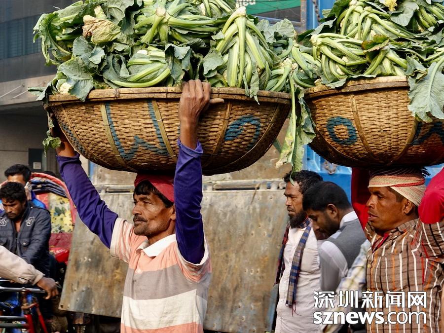 深圳新聞網(wǎng)2019年1月8日訊在孟加拉,無論城市,還是鄉(xiāng)下,人們頭頂重物的情景,確實是無處不在的。李仁奇攝
