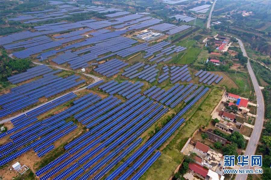 這是7月5日拍攝的山西省運(yùn)城市芮城縣光伏領(lǐng)跑技術(shù)基地(無人機(jī)拍攝)。新華社記者曹陽(yáng)攝