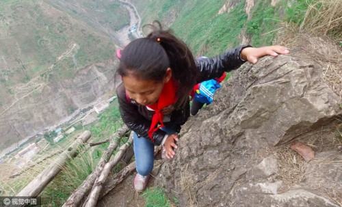 村里通向外界,需要順著懸崖斷續(xù)攀爬17條藤梯,其中接近村莊的幾乎垂直的兩條相連的藤梯長度約100米,沒有藤梯的崖壁才是最危險(xiǎn)的。據(jù)支爾莫鄉(xiāng)黨委書記阿皮幾體講,他知道的在這條路上摔死的人有七八個(gè),有村里的人,也有外來的人,而摔傷的人更多。圖片來源:視覺中國