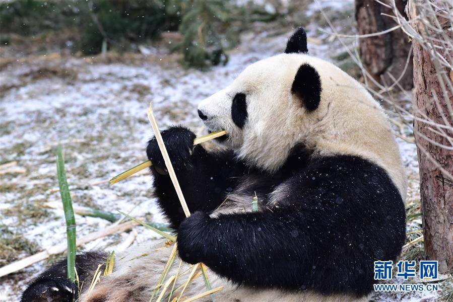 11月29日,在西寧熊貓館內,兩只大熊貓在吃竹子。 當日,青海省西寧市迎來降雪,西寧熊貓館四只“萌寵”大熊貓在雪天里享受著吃竹子的樂趣。據(jù)了解,大熊貓生活的適宜溫度在26攝氏度至零下5攝氏度之間,冬季氣溫低于零下5攝氏度時,場館會啟用保暖設施。 新華社記者 吳剛 攝