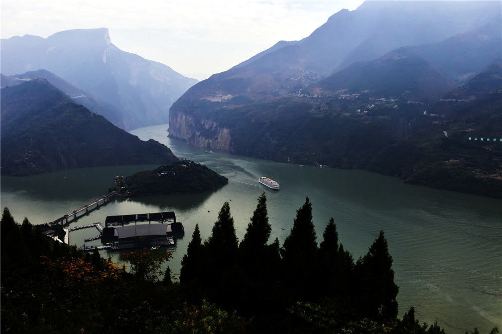 2019年11月3日,重慶,深秋時節(jié)晨曦初露中的三峽夔門和奉節(jié)白帝城,猶如一顆顆鑲嵌在群山里的江河明珠。