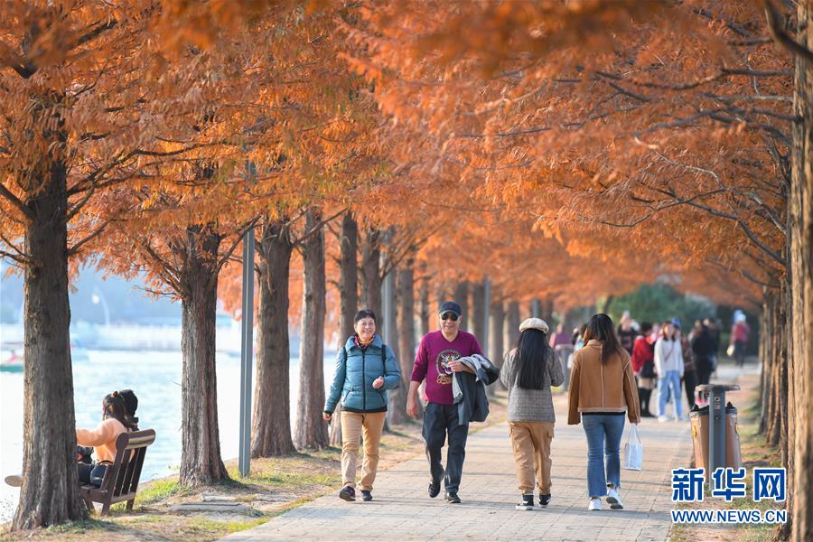 12月10日,游客在湖南烈士公園年嘉湖的游道上行走。新華社記者陳澤國攝