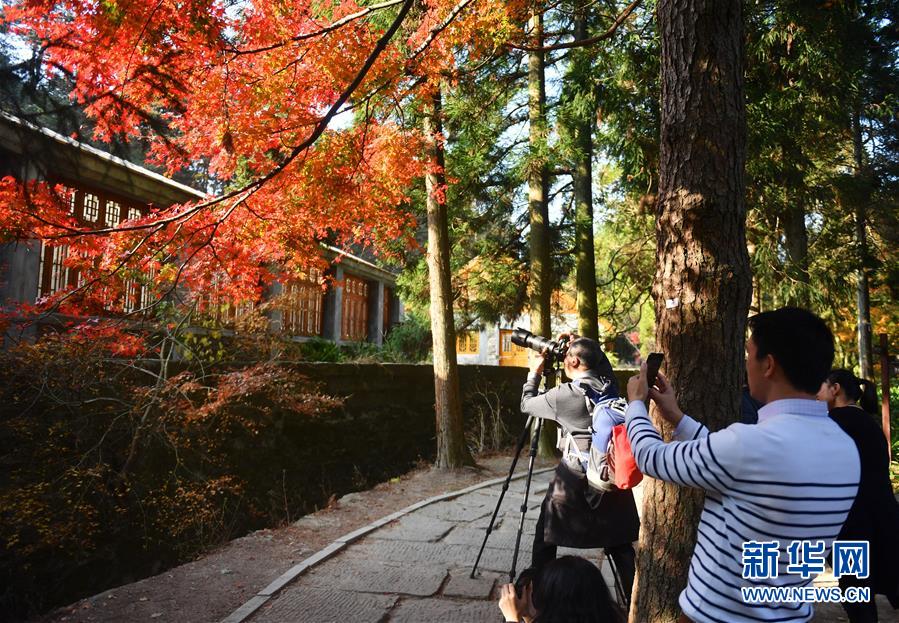 11月17日,游客在廬山如琴湖旁拍照。新華社記者張浩波攝