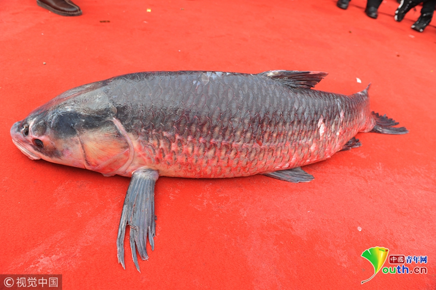 1月6日,安徽省阜陽市潁上縣八里河漁場正式開始進(jìn)行冬季大捕魚,捕獲的一條重達(dá)78斤的“頭魚”拍出88萬元,現(xiàn)場吸引眾多客商和廣大群眾觀看。據(jù)悉,此次所得拍賣款全部用于當(dāng)?shù)孛撠毠?。圖片來源:視覺中國