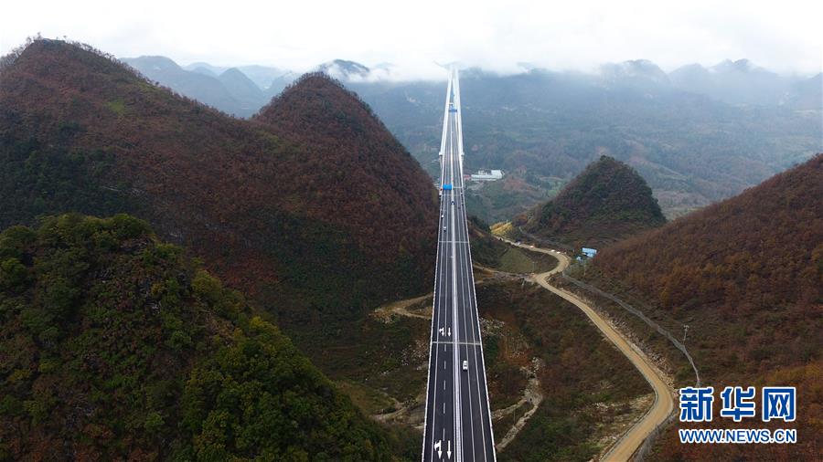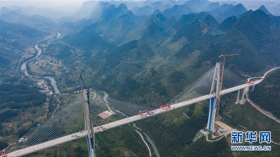 拼版照片:上圖為2019年12月30日無人機拍攝的平塘特大橋;中圖為2019年9月20日無人機拍攝的平塘特大橋;下圖為2018年9月25日無人機拍攝的平塘特大橋。新華社記者楊文斌攝