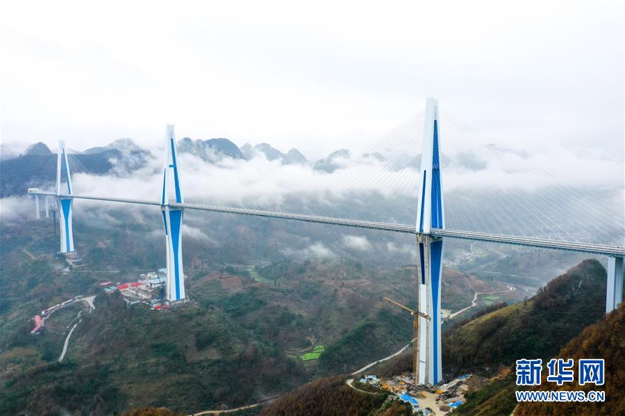 12月30日拍攝的貴州平塘特大橋橋塔。新華社記者楊文斌攝