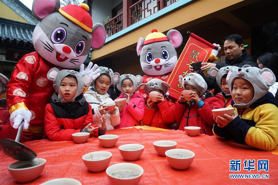 1月2日,小朋友在南京玄奘寺的贈粥送祝?;顒蝇F(xiàn)場喝臘八粥。 當(dāng)日是農(nóng)歷臘月初八,中國傳統(tǒng)臘八節(jié)。 新華社記者 季春鵬 攝
