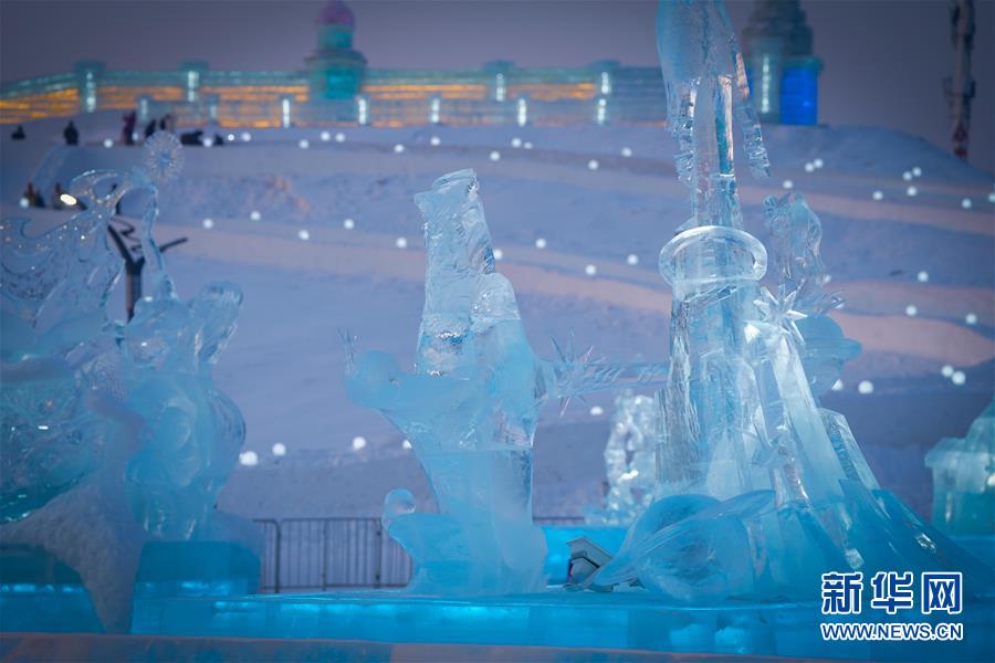 這是哈爾濱冰雪大世界園區(qū)中的景觀(1月5日攝)。新華社記者王松攝
