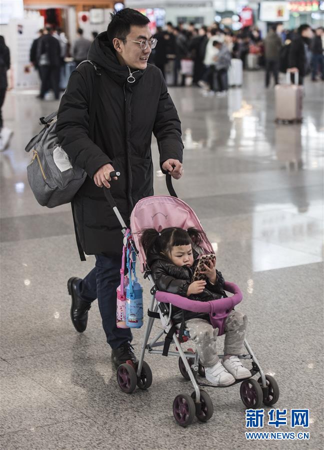 1月14日,在西安北站候車大廳,一位父親推著孩子快步走向檢票口。路再遠、再艱辛,也擋不住回家的腳步。在西安北站的每一個角落,處處充滿溫情和歸鄉(xiāng)的盼望。連日來,西安北站日均發(fā)送旅客12.1萬人次,一列列春運的列車,載著中國人的鄉(xiāng)愁,駛向遠方。新華社記者陶明攝