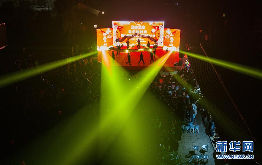 1月14日,杭州市余杭區(qū)中泰街道中橋村的文化公園內(nèi)在進(jìn)行“我們的村晚”表演。臨近春節(jié),浙江省杭州市余杭區(qū)中泰街道各村社的文化禮堂紛紛上演“我們的村晚”。老百姓自編、自導(dǎo)、自演為主的“土味”聯(lián)歡會(huì)因接地氣、親情濃而深受當(dāng)?shù)匕傩盏南矏?,成為?dāng)?shù)剜l(xiāng)村百姓的新年迎春“文化大餐”。近年來,中泰街道以文化振興助推鄉(xiāng)村振興。目前,中泰街道下屬各村陸續(xù)建成文化禮堂7個(gè)、社區(qū)文化家園2個(gè),努力培育和挖掘出一批鄉(xiāng)土文化人才及原創(chuàng)作品,2019年全年開展各類鄉(xiāng)村社區(qū)惠民文體活動(dòng)累計(jì)180余場(chǎng)次。新華社記者徐昱攝