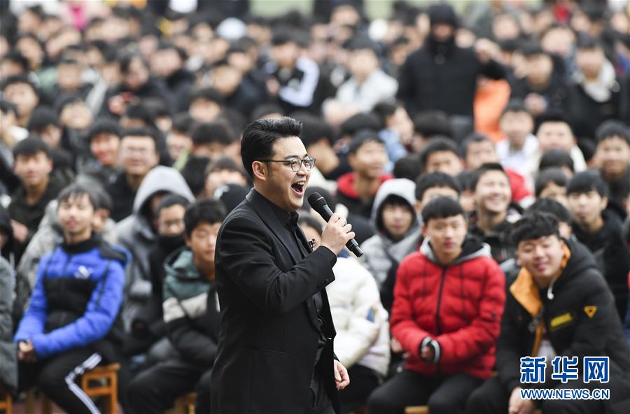 1月15日,中央歌劇院男中音歌唱家金川在慰問演出中演唱。 當日,“我們的中國夢”——文化進萬家中央歌劇院文藝小分隊來到重慶市石柱土家族自治縣第一職業(yè)學(xué)校進行慰問演出,為學(xué)校的三千多名師生帶來了一場精彩的音樂大餐。 新華社記者 王全超 攝