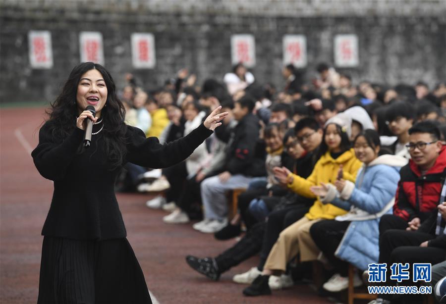 1月15日,中央歌劇院女高音歌唱家蔡楠在慰問演出中演唱。 當(dāng)日,“我們的中國夢”——文化進(jìn)萬家中央歌劇院文藝小分隊(duì)來到重慶市石柱土家族自治縣第一職業(yè)學(xué)校進(jìn)行慰問演出,為學(xué)校的三千多名師生帶來了一場精彩的音樂大餐。 新華社記者 王全超 攝