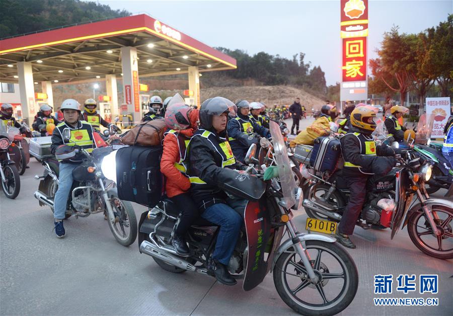 當(dāng)日,首批198輛摩托車、268人從福建省泉州、廈門、漳州等地出發(fā),踏上回家之旅。為方便這支摩托大軍,從1月15日至23日,中石油啟動連續(xù)第9年的“溫暖回家路·鐵騎返鄉(xiāng)”公益行動,開放福建、江西兩地35座加油站,為返鄉(xiāng)鐵騎提供免費(fèi)加油、交通反光背心、姜湯熱茶和地圖等一系列愛心幫助。