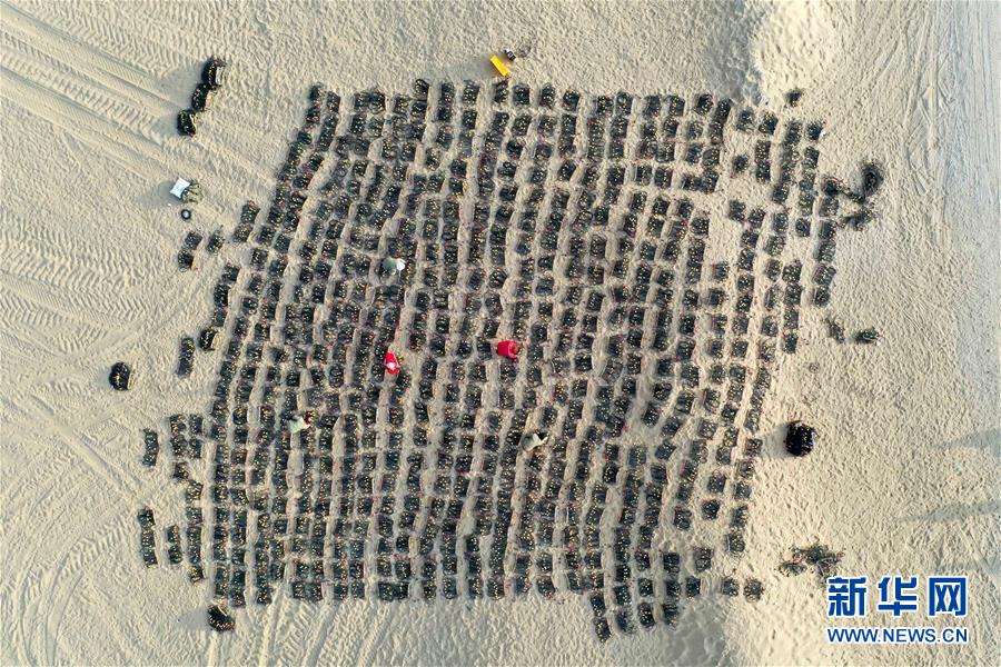 查線女工在檢測待用的檢波器(無人機照片,1月14日攝)。 新華社記者 丁磊 攝