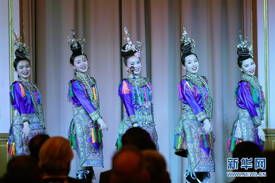 1月15日,在德國柏林,貴州省歌舞劇院藝術(shù)團的演員在晚會上表演。 15日晚,2020年“歡樂春節(jié)”新春文藝晚會在德國柏林的紅色市政廳上演,中德兩國各界代表觀看演出,共慶中國農(nóng)歷新年。 新華社記者 王勍 攝
