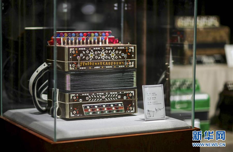 塔城市手風琴博物館里展出的產(chǎn)自俄羅斯的手風琴(1月21日攝)。新華社記者 趙戈 攝