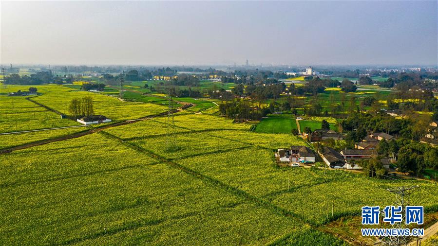 2月24日在四川省大邑縣安仁鎮(zhèn)永興村拍攝的油菜花田(無人機(jī)照片)。 新華社記者 王曦 攝