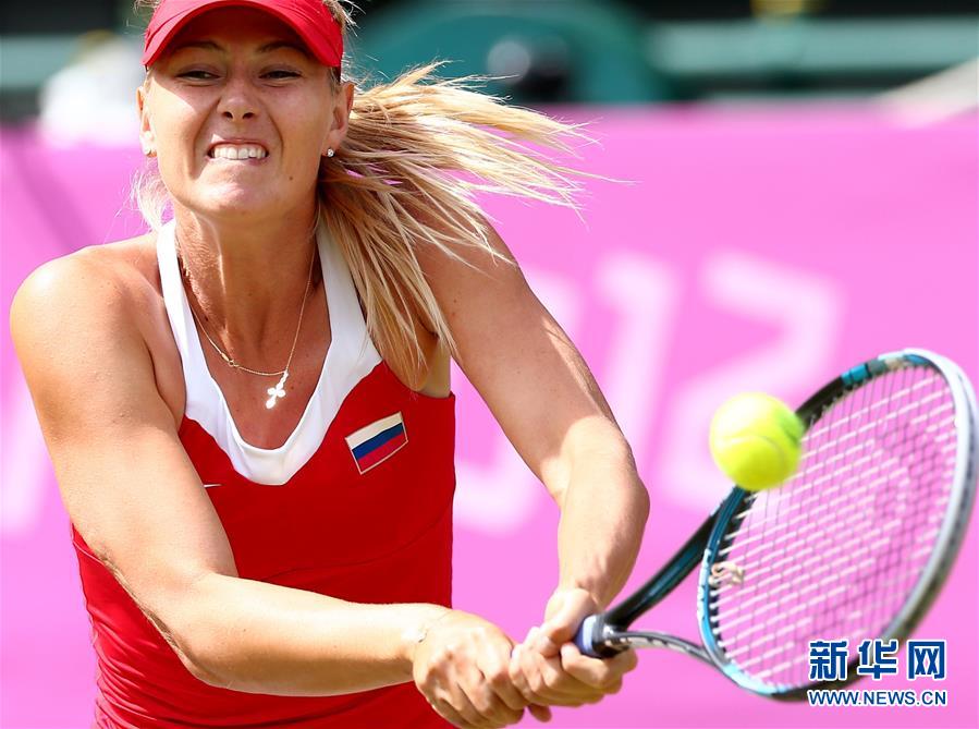 圖為2012年8月4日,莎拉波娃在倫敦奧運(yùn)會(huì)網(wǎng)球女單決賽中回球。最終,她以0比2不敵美國選手小威廉姆斯,獲得亞軍。 新華社記者陳建力攝