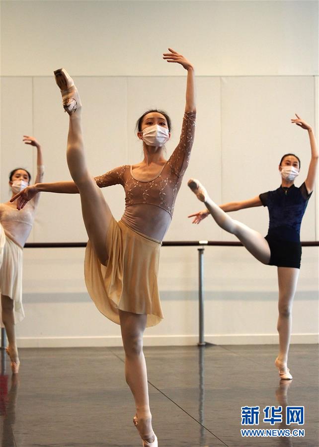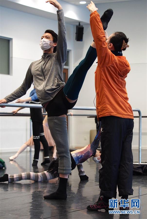 2月29日,在通過網(wǎng)絡(luò)直播的“公益公開課”上,上海芭蕾舞團團長辛麗麗(前右)在指導(dǎo)團員。新華社記者任瓏攝