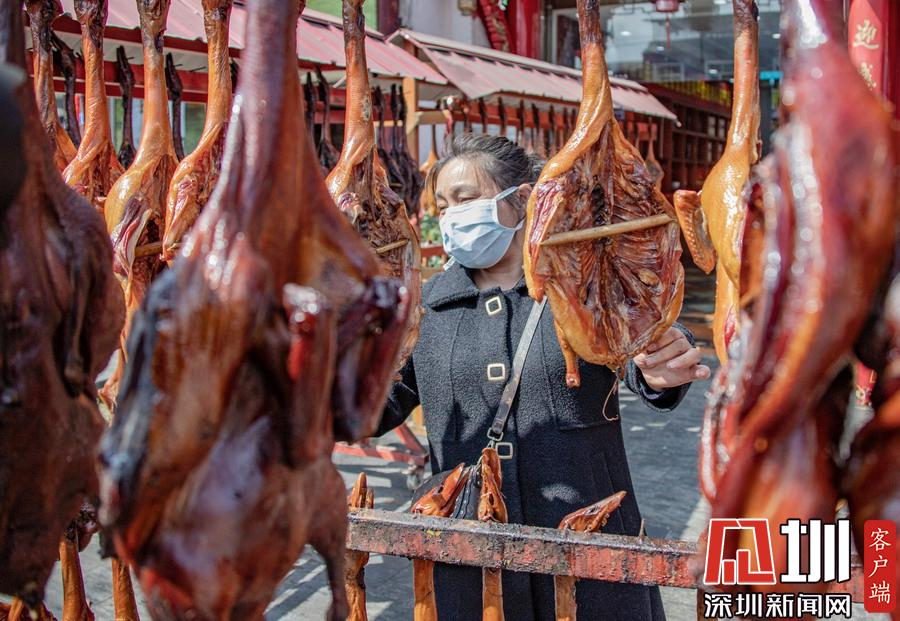 2020年2月28日,走進四川省成都市彭州市九尺鎮(zhèn),拍攝的傳統(tǒng)名吃—九尺板鴨圖片。早在明朝,九尺板鴨已頗有名氣,是當?shù)卮脱缳e的必備菜式。因其主產(chǎn)地在彭州市九尺鎮(zhèn)而得名。