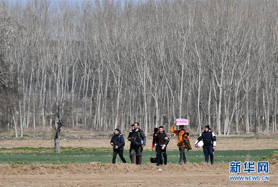 3月3日,在土耳其埃迪爾內省,非法移民走向土耳其歐盟邊界。土耳其從上周開始放松與歐盟成員國希臘和保加利亞邊界的管控,目前有大量非法移民聚集在土耳其西北部的埃迪爾內省靠近土耳其歐盟邊界的地方,試圖從這里進入歐盟國家。新華社記者徐速繪攝