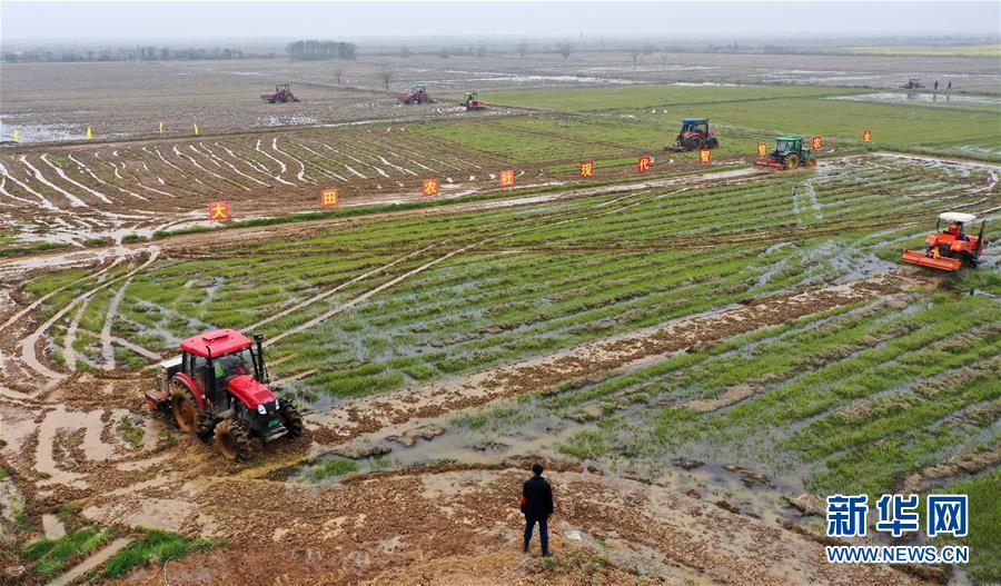 江西省南昌市南昌縣蔣巷鎮(zhèn)農(nóng)民駕駛拖拉機(jī)進(jìn)行春耕翻地作業(yè)(無人機(jī)照片,2月28日攝)。新華社記者 彭昭之 攝
