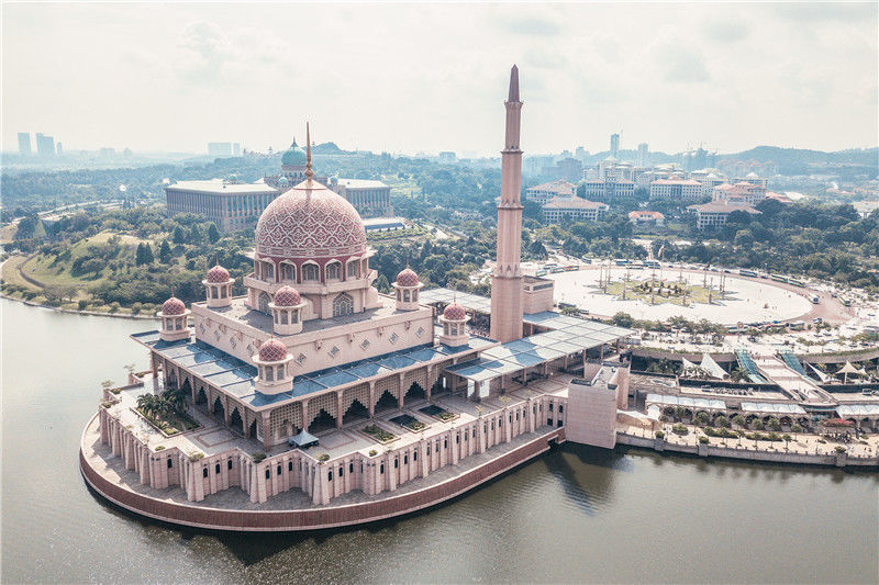 2018年05月30日,位于馬來西亞首都布城粉紅清真寺(Masjid Putra),圖為航拍俯視圖。丁俊豪/視覺中國