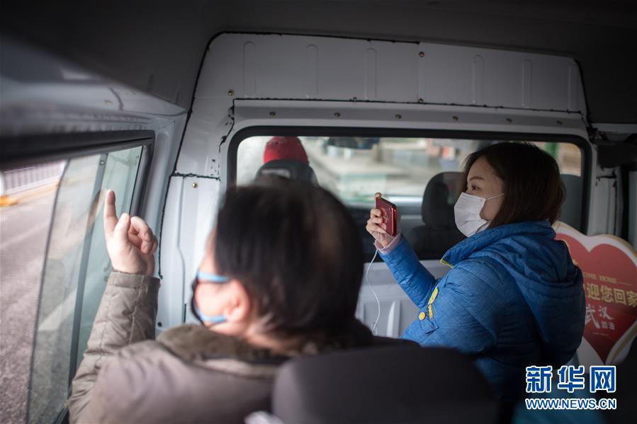 3月12日,黎婧(右)被小區(qū)工作人員接上車后,透過(guò)車窗拍攝熟悉的街道。 3月12日,插畫(huà)師黎婧和84位病友離開(kāi)自己居住的武漢軟件工程職業(yè)學(xué)院康復(fù)驛站,回到自己家中。他們都是治愈出院的新冠病毒肺炎患者,已經(jīng)在武漢軟件工程職業(yè)學(xué)院康復(fù)驛站進(jìn)行了14天醫(yī)學(xué)觀察,達(dá)到醫(yī)學(xué)標(biāo)準(zhǔn),成功解除隔離。他們由專車運(yùn)送至所屬社區(qū)附近的集散點(diǎn)后,在社區(qū)工作人員的陪同下回家。 新華社記者 肖藝九 攝