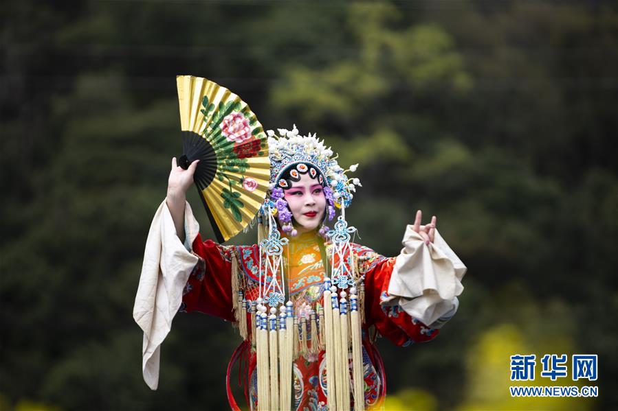 3月16日,演員在李坑村的“花田音樂會”上表演戲曲。 新華社記者 張浩波 攝