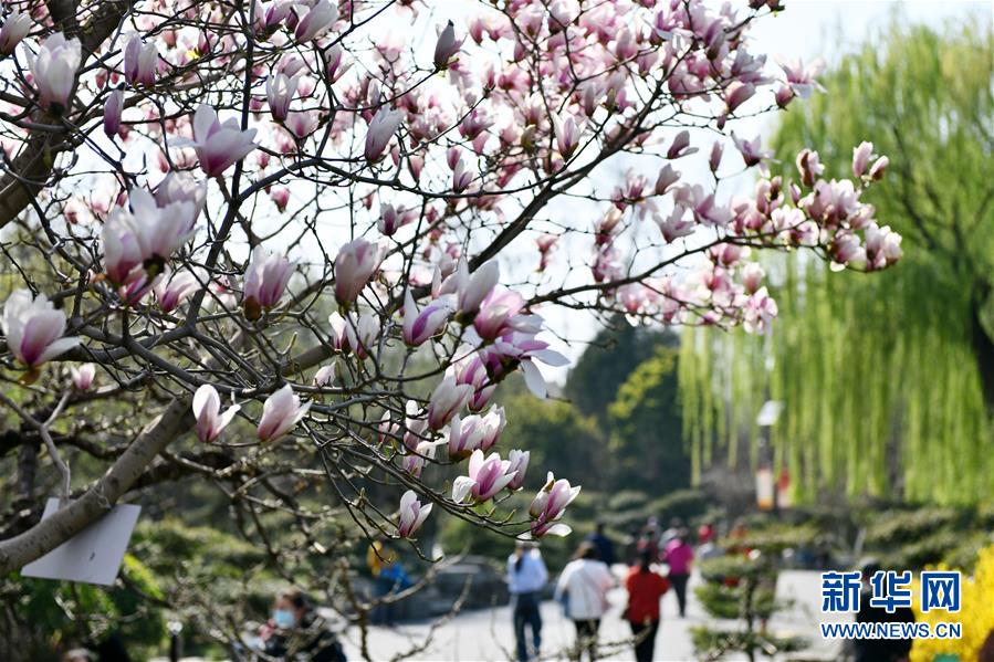 3月18日拍攝的百花公園內(nèi)盛開(kāi)的玉蘭花。