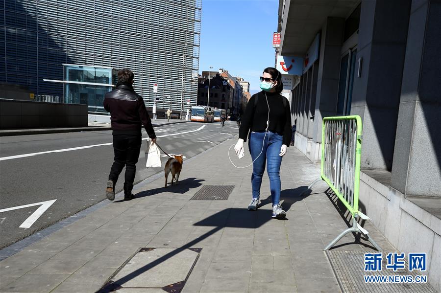 3月18日,在比利時布魯塞爾,佩戴口罩的行人走在馬路上。 截至17日,比利時累計確診新冠肺炎病例1243例,死亡10例,治愈出院15例。比利時首相維爾梅斯當天宣布,從18日12時起全國范圍內(nèi)將實施“封城”,結(jié)束時間暫定為4月5日。根據(jù)全國安全委員會特別會議決定,除上下班,購買食品、藥品、就醫(yī)等特定情況外,全國民眾必須待在家中;有條件的企業(yè)必須進行遠程辦公。 新華社記者 張鋮 攝