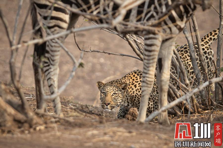 獵豹仿佛和斑馬成為了好友,緊緊跟隨這個(gè)新伙伴一起行走。