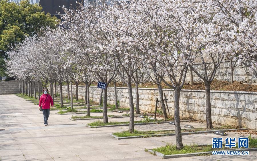 3月19日,在武漢市武昌區(qū)被網(wǎng)友稱為“武漢最美停車場(chǎng)”的湖北日?qǐng)?bào)停車場(chǎng),一名工作人員從櫻花樹邊經(jīng)過(guò)。 新華社記者 才揚(yáng) 攝