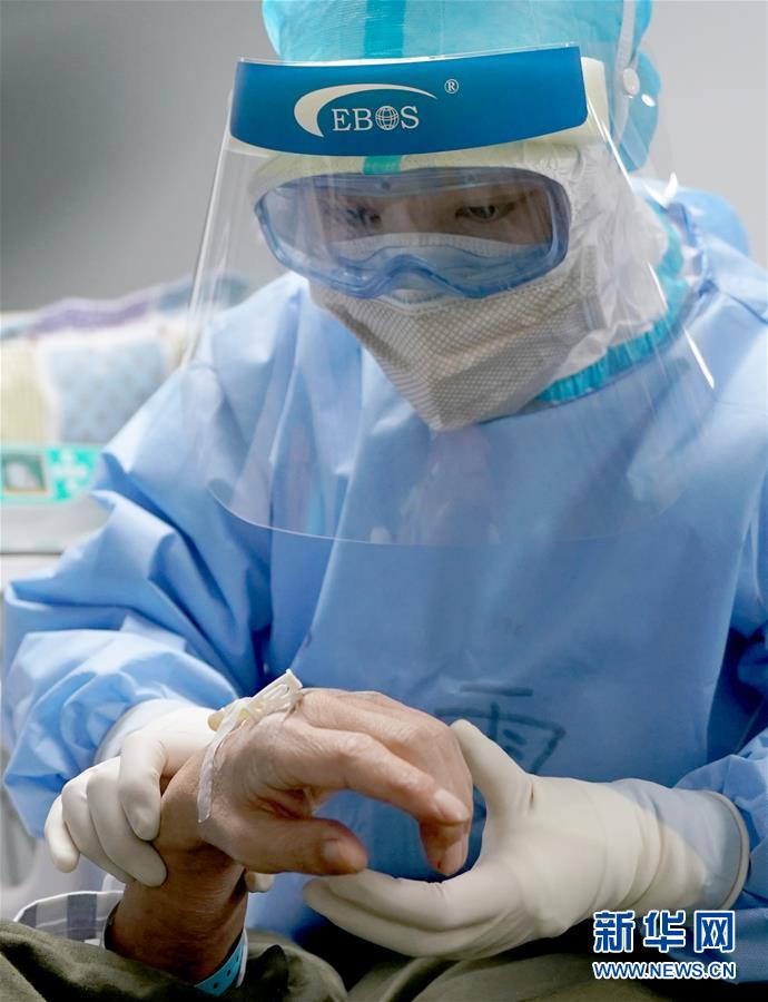 90后護(hù)士文雯在進(jìn)行輸液前檢查留置針情況(3月20日攝)。 武漢火神山醫(yī)院重癥醫(yī)學(xué)一科的護(hù)理團(tuán)隊(duì)共50名護(hù)士,其中絕大多數(shù)是80后、90后女性,她們不懼危險,奮戰(zhàn)在抗擊疫情的最前沿“紅區(qū)”。 新華社記者王毓國攝