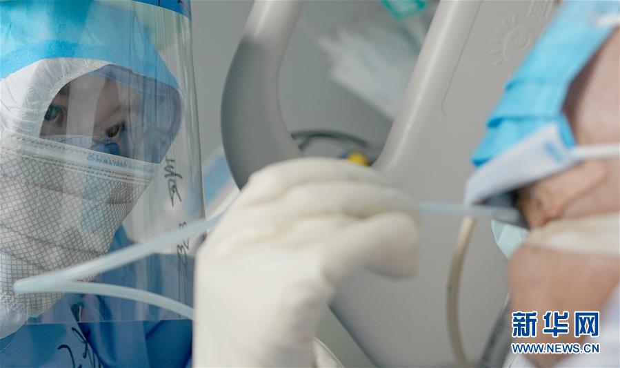 90后護(hù)士孫青在為患者吸痰(3月20日攝)。 武漢火神山醫(yī)院重癥醫(yī)學(xué)一科的護(hù)理團(tuán)隊(duì)共50名護(hù)士,其中絕大多數(shù)是80后、90后女性,她們不懼危險,奮戰(zhàn)在抗擊疫情的最前沿“紅區(qū)”。 新華社記者王毓國攝