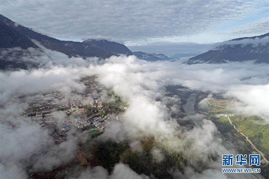 這是云?;\罩的西藏墨脫縣(4月9日無人機(jī)拍攝)。新華社記者李鑫攝