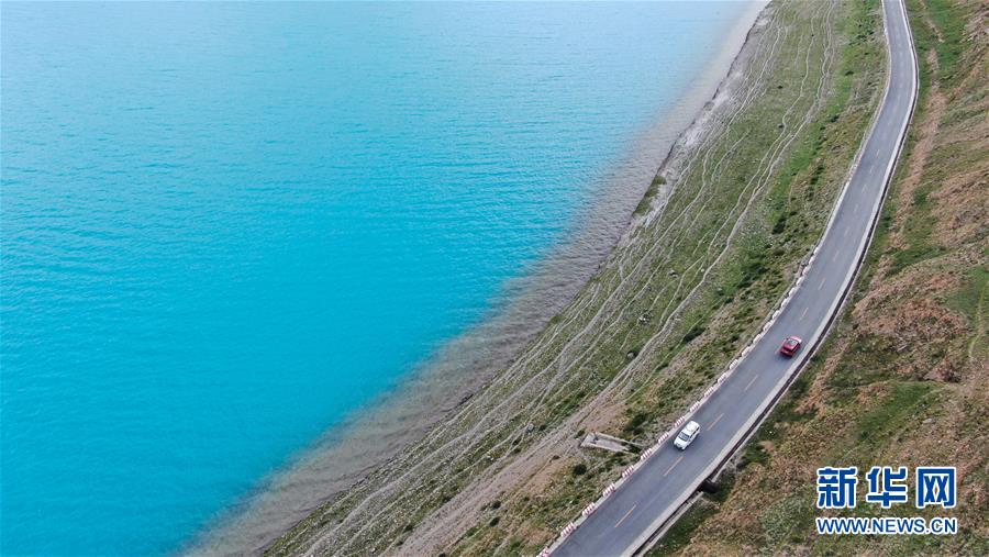 普姆雍錯湖緊挨著公路,是自駕游的理想目的地(9月19日無人機(jī)拍攝)。新華社記者晉美多吉攝