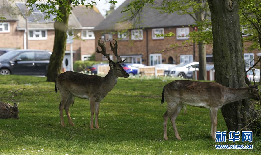 4月8日,在英國倫敦東部一個居民區(qū),附近公園里的鹿在草坪上駐足。隨著新冠疫情在英國的擴散,政府要求人們減少不必要的外出。倫敦東部一個居民區(qū)附近公園里原來散養(yǎng)的鹿紛紛從公園走出來,或吃草或接受附近居民的喂食,成為特殊時期居民區(qū)里的新“客人”。新華社記者韓巖攝