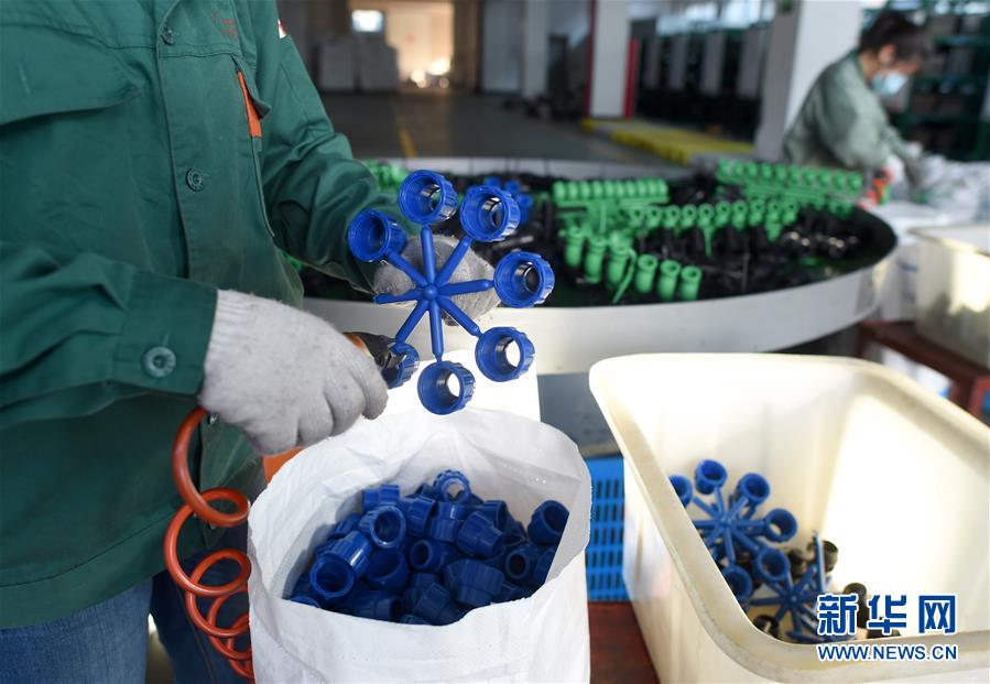 4月13日,員工在位于店口鎮(zhèn)的諸暨市風(fēng)帆管業(yè)有限公司注塑車(chē)間分揀自動(dòng)化生產(chǎn)線上的管件。新華社記者韓傳號(hào)攝