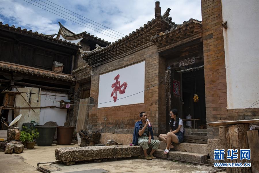 工人王建雄在修繕石屏縣異龍鎮(zhèn)符家營村189號民居的圍墻(8月8日攝)。新華社記者江文耀攝
