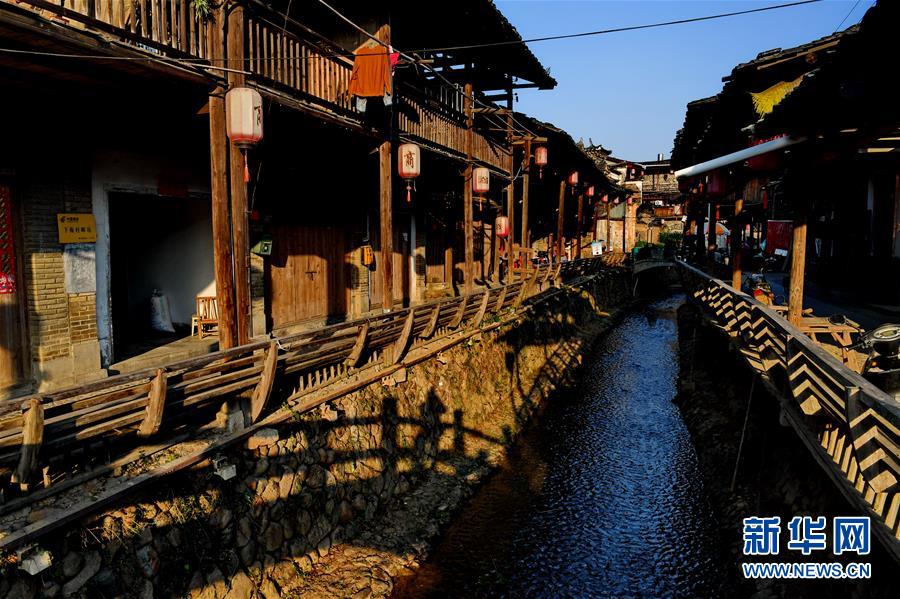 游客在武夷山下梅村游覽(11月5日攝)。福建省武夷山市下梅村是“中國歷史文化名村”,這里歷史悠久,人文薈萃,至今保存著70余幢明清時代的古民居。人工運河穿村而過,古民居、涼亭、古街等構(gòu)成了別具特色的江南水鄉(xiāng)風(fēng)景。新華社記者馬平攝
