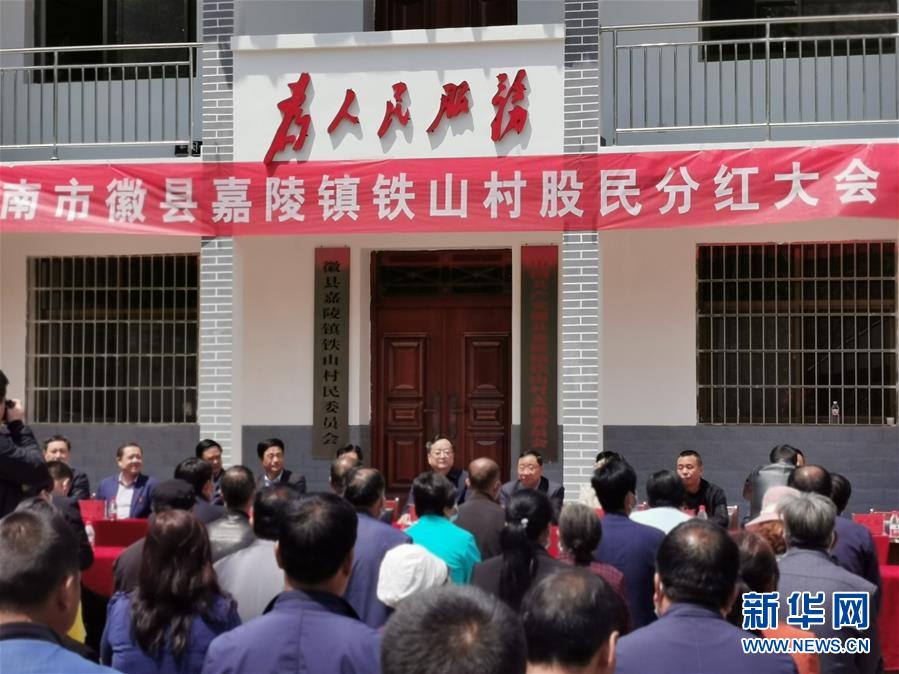 4月24日拍攝的甘肅省隴南市徽縣鐵山村公開分紅大會(huì)現(xiàn)場。新華社記者張新新攝