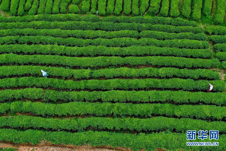 4月25日,茶農(nóng)在“扶貧茶園”內(nèi)采茶(無人機(jī)照片)。谷雨過后,在貴州省黔東南苗族侗族自治州丹寨縣“扶貧茶園”,茶農(nóng)搶抓農(nóng)時趕制春茶。丹寨縣創(chuàng)新產(chǎn)業(yè)扶貧模式,鼓勵社會公眾線上認(rèn)領(lǐng)茶園,再由茶園聘請當(dāng)?shù)刎毨魟?wù)工,為貧困戶創(chuàng)造茶園管理、采茶、制茶等就業(yè)機(jī)會,幫助貧困戶增收。今年以來,“扶貧茶園”已接受線上預(yù)訂600余畝,給當(dāng)?shù)?00余名村民提供了就業(yè)機(jī)會。新華社記者歐東衢攝
